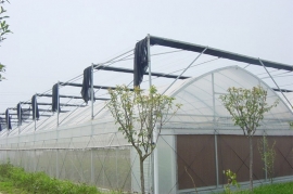 该产品由基础、框架立柱,顶部拱管三大部分组成。点式独立基础,使大棚根基牢固;立柱采用热镀锌方管,大大增强抗风抗雪强度;顶部由热浸镀锌钢管排列成平滑圆弧形,牢固兼美观。同时天沟采用2mm厚热镀锌板冷弯成型,容量大,排水及时;顶部天沟处和大棚四周均设置摇膜通风系统,是大棚内部气流通畅。此产品可根据需要实现相关配套设施,以便达到更理想的效果,如外遮阳系统、内遮阳保温系统、降温系统、加温系统、喷滴灌系统等。