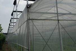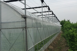 该产品由基础、框架立柱,顶部拱管三大部分组成。点式独立基础,使大棚根基牢固;立柱采用热镀锌方管,大大增强抗风抗雪强度;顶部由热浸镀锌钢管排列成平滑圆弧形,牢固兼美观。同时天沟采用2mm厚热镀锌板冷弯成型,容量大,排水及时;顶部天沟处和大棚四周均设置摇膜通风系统,是大棚内部气流通畅。此产品可根据需要实现相关配套设施,以便达到更理想的效果,如外遮阳系统、内遮阳保温系统、降温系统、加温系统、喷滴灌系统等。