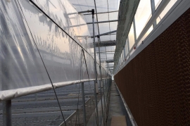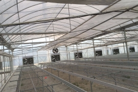 该产品由基础、框架立柱,顶部拱管三大部分组成。点式独立基础,使大棚根基牢固;立柱采用热镀锌方管,大大增强抗风抗雪强度;顶部由热浸镀锌钢管排列成平滑圆弧形,牢固兼美观。同时天沟采用2mm厚热镀锌板冷弯成型,容量大,排水及时;顶部天沟处和大棚四周均设置摇膜通风系统,是大棚内部气流通畅。此产品可根据需要实现相关配套设施,以便达到更理想的效果,如外遮阳系统、内遮阳保温系统、降温系统、加温系统、喷滴灌系统等。