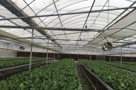 该产品由基础、框架立柱,顶部拱管三大部分组成。点式独立基础,使大棚根基牢固;立柱采用热镀锌方管,大大增强抗风抗雪强度;顶部由热浸镀锌钢管排列成平滑圆弧形,牢固兼美观。同时天沟采用2mm厚热镀锌板冷弯成型,容量大,排水及时;顶部天沟处和大棚四周均设置摇膜通风系统,是大棚内部气流通畅。此产品可根据需要实现相关配套设施,以便达到更理想的效果,如外遮阳系统、内遮阳保温系统、降温系统、加温系统、喷滴灌系统等。